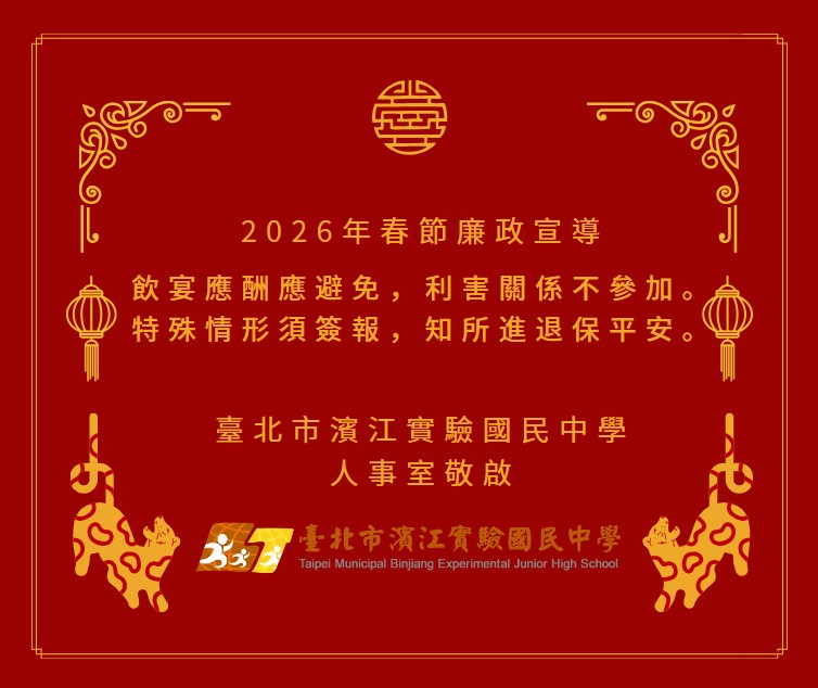 校園公告 公告主旨 2026年春節廉政宣導 發佈日期 2026 年 1 月 27 日 發佈單位 人事室 公告類別 行政公告, 政令宣導 公告等級 重要 點閱次數 74 公告內容 相關附件 春節廉政宣導 春節廉政宣導 檔案名稱檔案大小檔案格式下載春節廉政宣導.jpg87.06 KB新視窗開啟檔案 春節廉政宣導.jpg 【2026-01-28】國立中央大學辦理教育部國中小自然科學適性教學教 材研發實驗計 ... 【2026-01-27】2026 神腦原鄉踏查校園影展免費播映活動申請資訊
